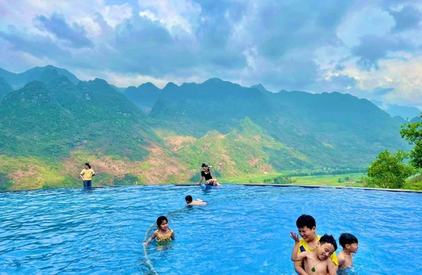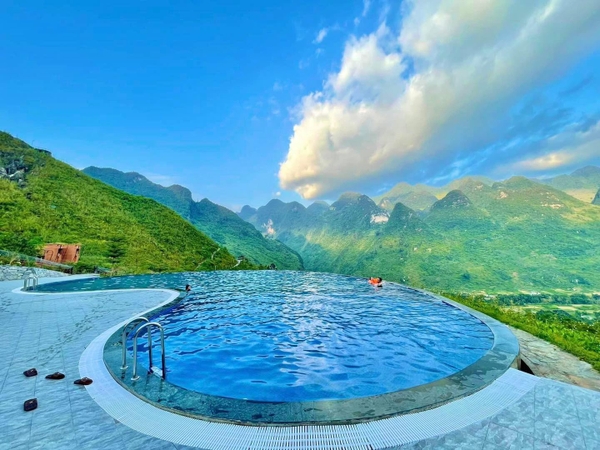 Một trong những trải nghiệm tuyệt vời khi ghé thăm H'mong Village đó là thả mình trong bể bơi vô cực với tầm view bao trọn dãy núi Bát Đại Sơn hùng vĩ và thung lũng Tráng Kìm đầy thơ mộng. Thả lỏng mình tận hưởng làn nước mát trong của núi rừng giữa một kỳ quan đồ sộ của Thế Giới. ![]()