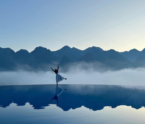Tầm view bao trọn dãy núi Bát Đại Sơn hùng vĩ của bể bơi vô cực.
