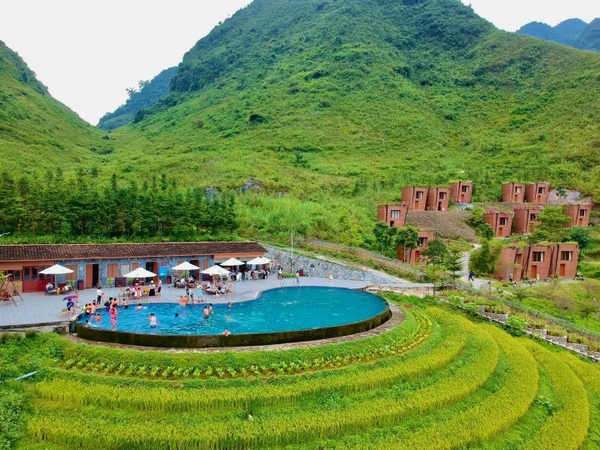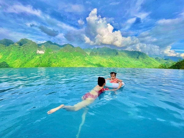 Thừa hưởng những món quà mà thiên nhiên ban tặng, H’mong Village tận dụng không gian xanh và sắp xếp cảnh quan tổng thể hài hòa với tự nhiên, đặc biệt tận dụng dòng suối mát chảy ra từ lòng núi, H’mong Village xây dựng 01 bể bơi vô cực với hệ thống nước khoáng tự nhiên chảy hai chiều song song. Cùng với lối thiết kế bể tràn, đây là công trình đầu tiên và duy nhất tại Hà Giang. Bể ngoài trời với 180 độ view, thu trọn khung cảnh núi non hùng vĩ vào trong tầm mắt, xứng đáng là nơi để du khách thư giãn, tận hưởng và tái tạo năng lượng.
