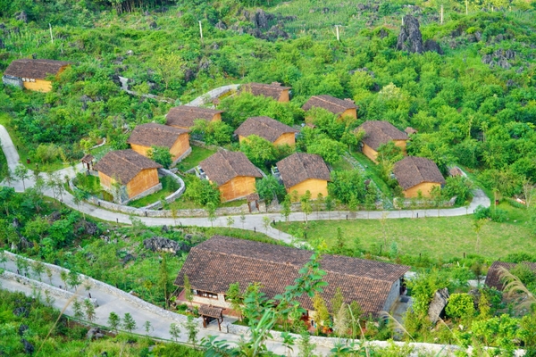 Bungalow double là căn phòng được thiết kế theo kiến trúc trình tường truyền thống của người Mông, được lợp mái ngói âm dương, với hàng rào đá xung quanh cùng với những cây đào cây lê trước cửa. Khi mùa xuân đến, nét đẹp nguyên sơn, thơ mộng bỗng được tô điểm bởi màu đỏ của hoa đào, màu trắng muốt của hoa mơ, hoa mận, hoa lê tất cả như hòa quyện tạo thành một bức tranh thiên nhiên độc đáo giữa cao nguyên đá.![]()