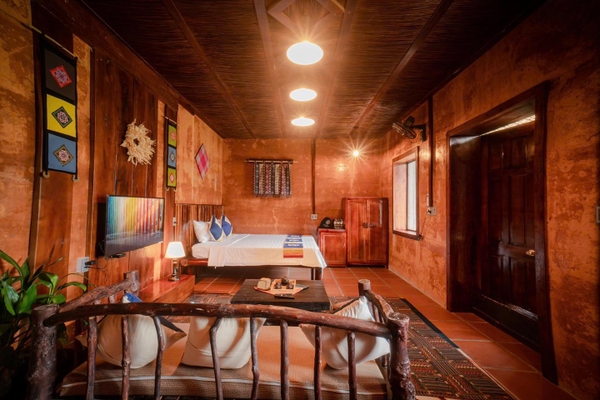 Nhờ kiến trúc nhà đất truyền thống, bungalow gia đình tại H’Mong Village phù hợp để lưu trú quanh năm.