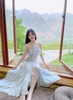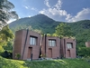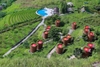 Bungalow đơn được xây dựng theo kiến trúc nhà trình tường truyền thống của người Mông, lợp mái ngói âm dương, bao quanh bởi hàng rào đá và vườn...