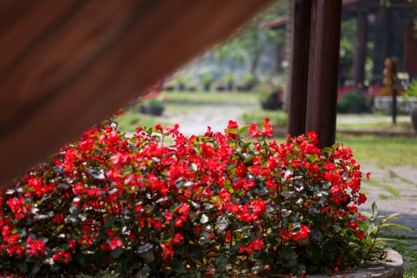 Các chậu cây của H'mong Village rực rỡ sắc hoa.