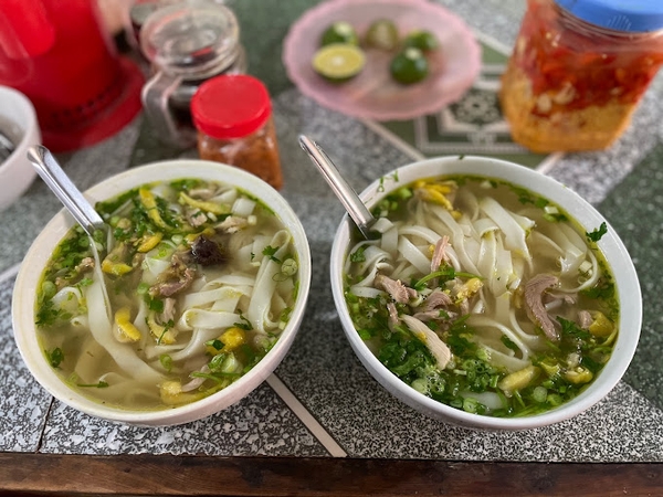 Ảnh: Phở tráng tay Tráng Kìm được thưởng thức với thịt gà bản