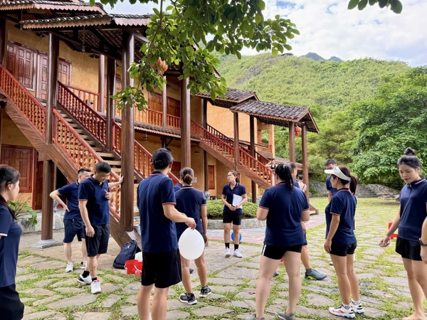 Ảnh: tổ chức teambuilding tại sân ngoài trời của H'mong Village
