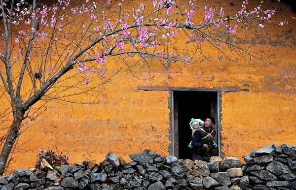 Hoa đào nở bên nếp nhà Hà Giang (Ảnh: Sưu tầm)