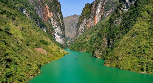Sông Nho Quế, dòng sông xanh ngọc bích, chảy uốn lượn giữa vách núi hùng vĩ của Hà Giang, tạo nên một khung cảnh thiên nhiên kỳ vĩ và thơ mộng. Bắt nguồn từ Trung Quốc, sông Nho Quế chảy dọc theo đèo Mã Pí Lèng và Hẻm Tu Sản, những địa danh nổi tiếng của vùng cao nguyên đá Đồng Văn. Du thuyền trên sông Nho Quế cho phép bạn chiêm ngưỡng vẻ đẹp tráng lệ của hẻm vực sâu nhất Đông Nam Á và cảm nhận sự hùng vĩ của núi non nơi địa đầu Tổ quốc.