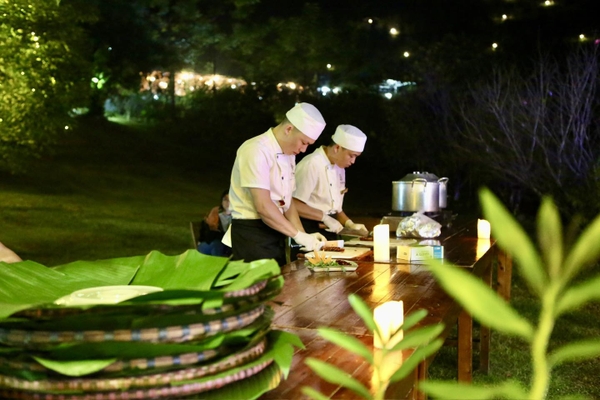 Đoàn đã có một buổi tiệc ngoài trời tại Sky Bar của H'mong Village với không khí se se lạnh của thời tiết Hà Giang, thưởng thức những món ăn đậm hương vị miền cao và hoà mình vào những tiết mục văn nghệ, lửa trại mang đặc trưng văn hoá dân tộc Mông.