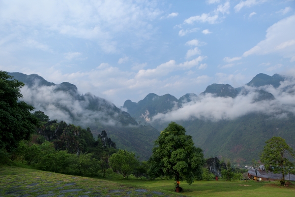 H'mong Village một buổi sáng sau cơn mưa rào mùa hạ lại yên bình và đầy sức sống mới lạ làm sao. Mở cánh cửa phòng nghỉ và ngắm nhìn bầu trời với những đám mây trắng đang cùng nhau dạo chơi trên nền trời trong xanh. Mặt trời vàng rực rỡ, tỏa những tia nắng chói chang xuống mặt đất, xuyên qua từng kẽ lá của các góc vườn làng Mông.