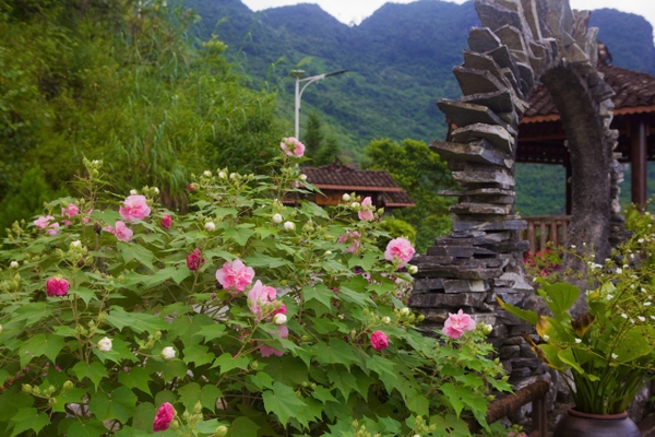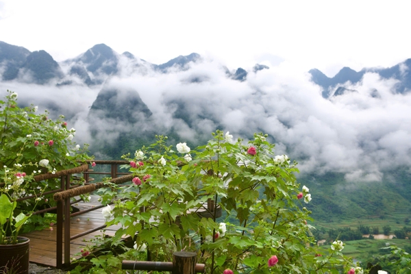 Ảnh: hoa phù dung nở tại lầu vọng cảnh của H'mong Village