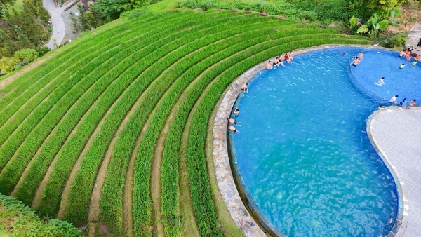 Từ ban công phòng nghỉ hay bể bơi vô cực, du khách có thể chiêm ngưỡng toàn cảnh mùa gặt rực rỡ. Dù là buổi sáng trong lành hay hoàng hôn buông xuống, cảnh sắc đều mang đến cảm xúc khó quên. Ở H’Mong Village, bạn không chỉ nghỉ ngơi mà còn được tận hưởng trọn vẹn bức tranh mùa vàng trên núi rừng Đông Bắc.