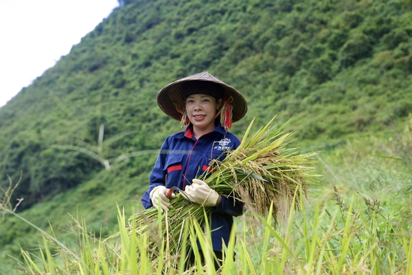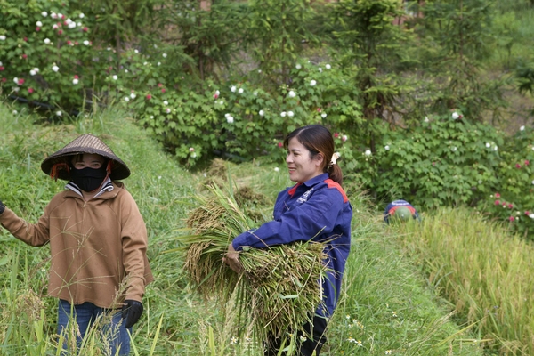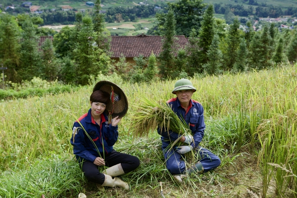 Ảnh: Thu hoạch lúa trên ruộng bậc thang H'mong Village