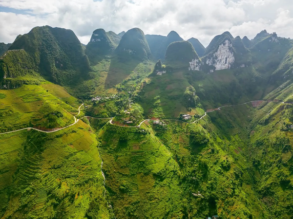 Đèo Mã Pí Lèng được mệnh danh là “vua của các con đèo Việt Nam”, nơi hội tụ trọn vẹn vẻ đẹp hoang sơ và kỳ vĩ của Hà Giang. Dịp Tết, con đèo như khoác thêm lớp áo mơ màng của sương xuân, ánh nắng nhẹ chiếu xuống dòng Nho Quế xanh ngọc bích uốn lượn bên dưới, tạo nên bức tranh khiến du khách chỉ muốn dừng lại thật lâu để cảm nhận.